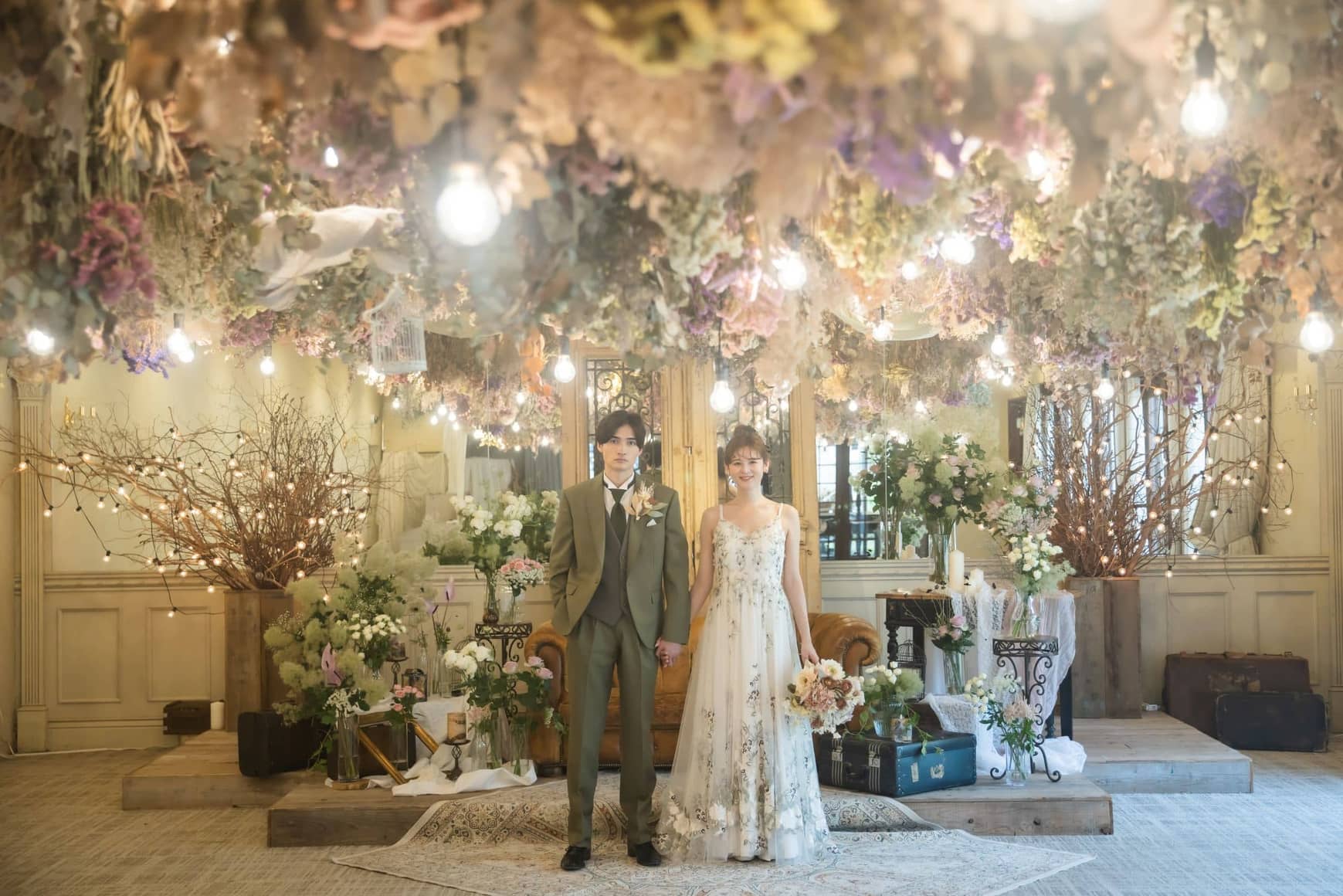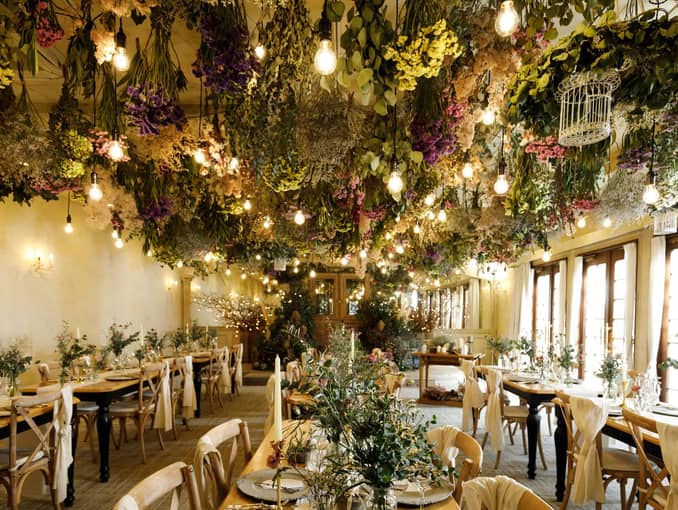 何もしなくても非日常を演出してくれるドライフラワーに彩られた会場