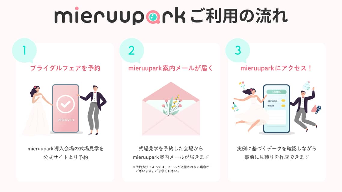 当会場の来館予約をいただいた方にはmieruuparkのご案内をLINEまたはメールにて差し上げております。